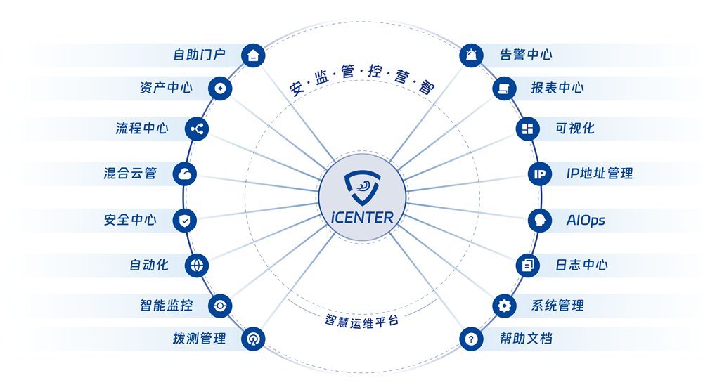 这是一款拥有自主知识产权及专利的产品。。创新地将安全服务与尊龙时凯传统核心运维服务有机的融合,,,打造出集“安、、、监、、、、管、、、控、、、营、、、智”为一体的智慧运维平台。。。其中的安全中心模块已形成了以运维账号统一管理为基础,,,覆盖运维安全审计、、、网络流量分析、、、、云安全等众多运维场景的安全能力。。。