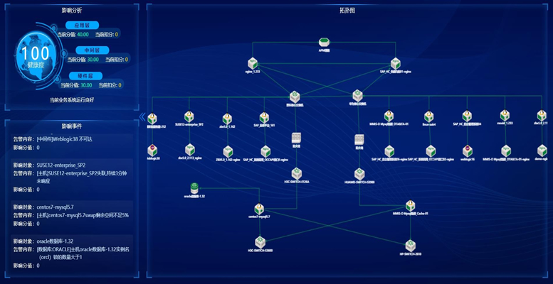 集中监控:从底层硬件到上层应用,,,,监控数据需要集中采集和分析,,,,并提供统一的告警通知和业务全景可视化;同时支持与虚拟化、、云平台等外部平台对接起来。。